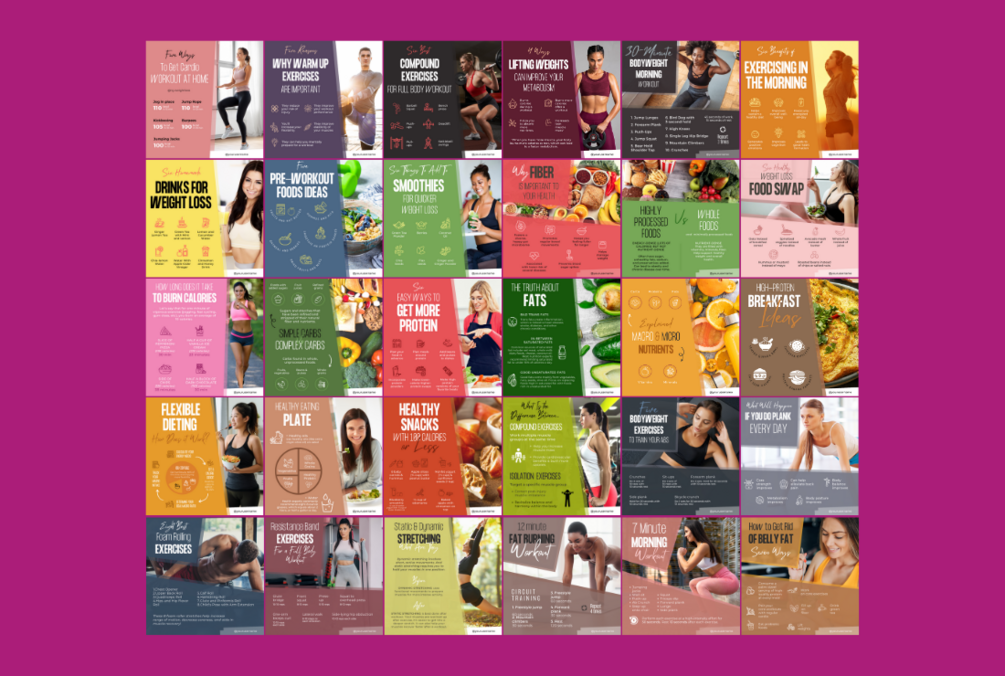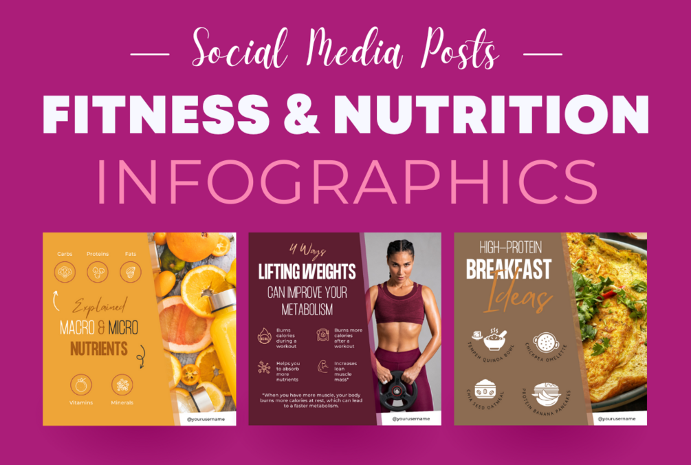 30 fitness and nutrition posts. The package includes 15 nutrition and 15 fitness posts.