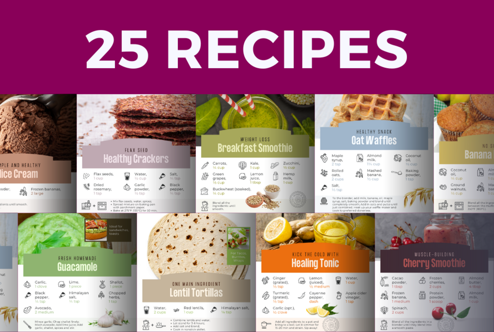 The package includes 25 healthy recipes in square size (png format).