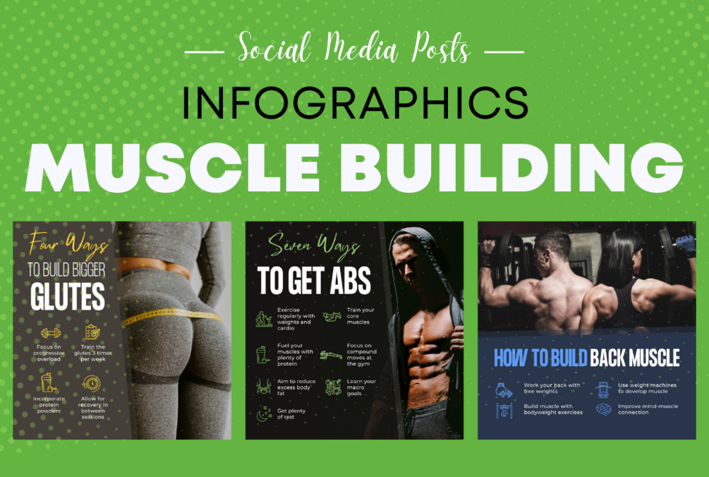 Ready Content - 30 Posts - Muscle Building Infographics (square size)